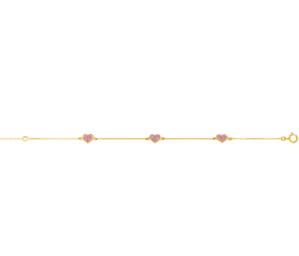 BRACELET OR 9 CARATS - ENFANT - 3 COEUR PAILLETÉ ROSE